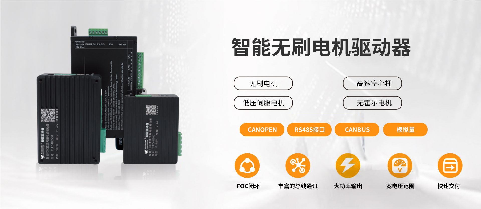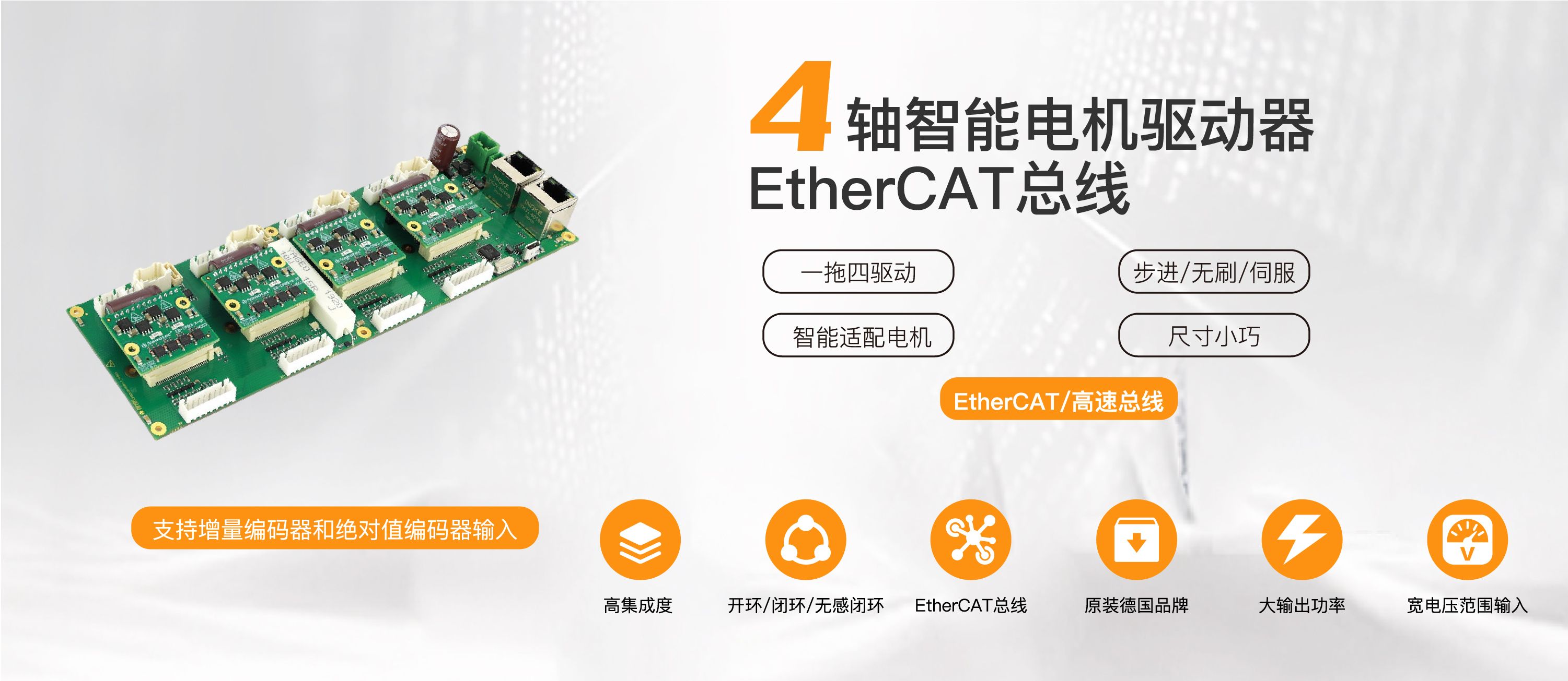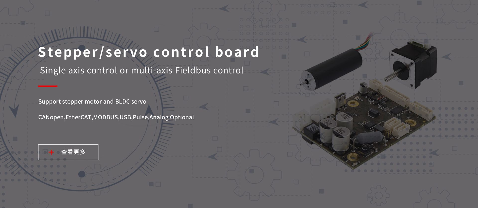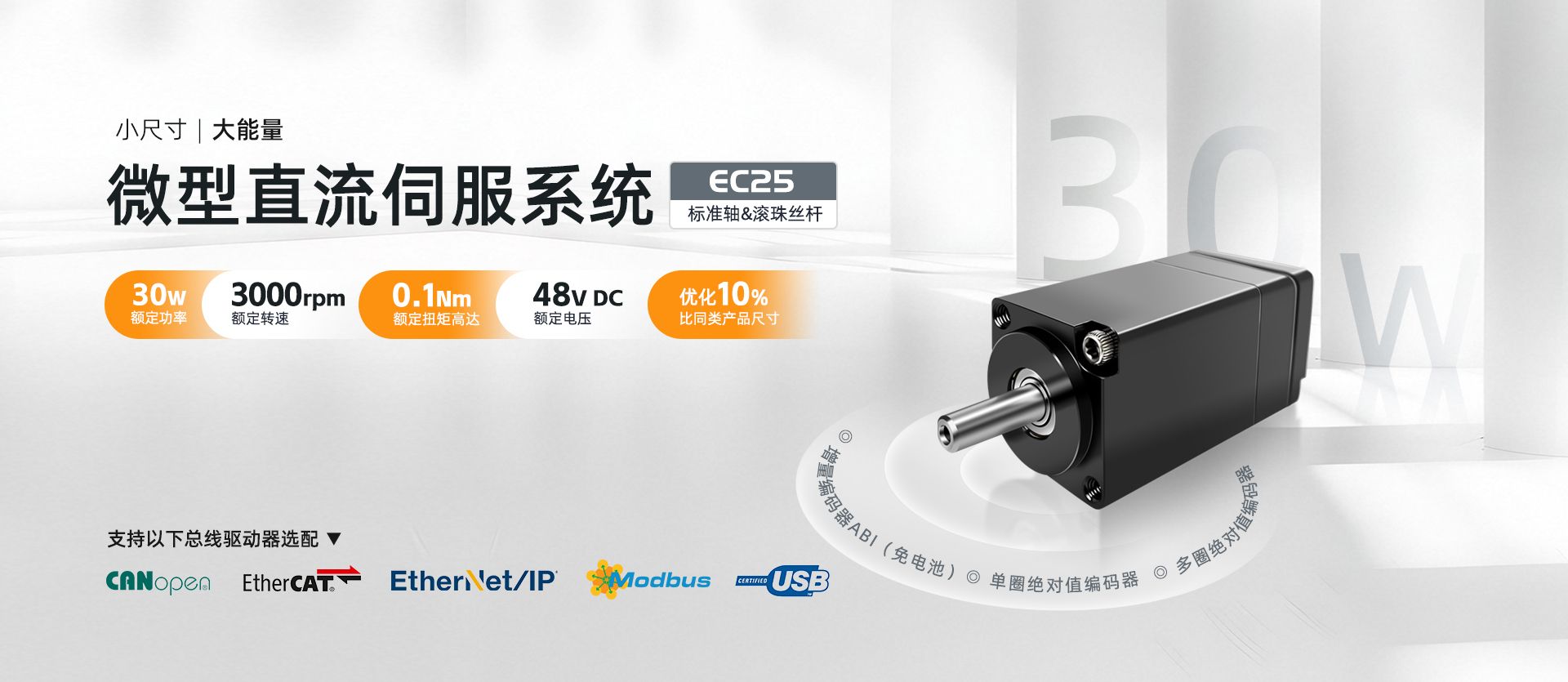 基于各种灵活的控制接口运动控制产品,为智能设备提供了强大的控制解决方案,设备与设备之间的高速连接方案,可以适应市场上几乎所有的主站系统,例如西门子,AB ,贝克霍夫,施耐德,欧姆龙等。 完整的基本电动机组件便于用户选择。